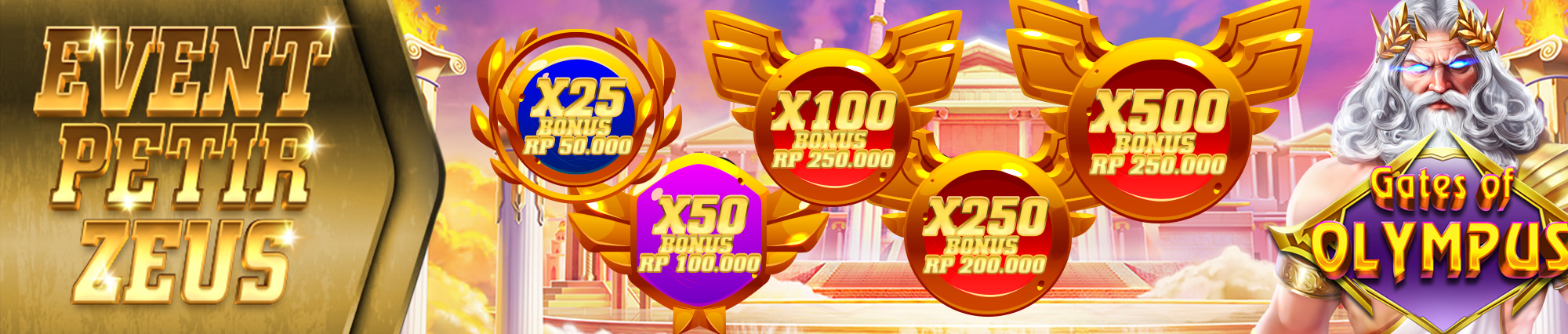 - Petir X25 = Bonus Rp 50.000 - Petir X50 = Bonus Rp 100.000 - Petir X100 = Bonus Rp 150.000 - Petir X250 = Bonus Rp 200.000 - Petir X500 = Bonus Rp 250.000 Minimal bonus yang diberikan 50.000 Maksimal bonus yang di berikan 350.000